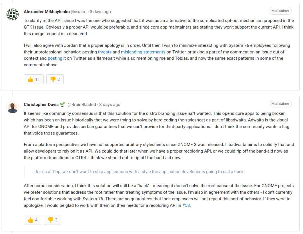 They then finished up their tirade with one of the baseless, sensationalized, whiny claims from one of the videos (from the Subsurface developer), who claimed that GTK developers not immediately agreeing to implement any feature they might want to add, or not being ready to constantly be an IT help desk for figuring out how to do things, constituted "abuse," and a little bit of their own added poisoning-of-the-well: